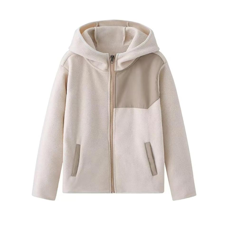 Chaqueta con capucha de lana Bloque de color Abrigo de manga larga con cremallera Prendas de abrigo para montañismo Escalada