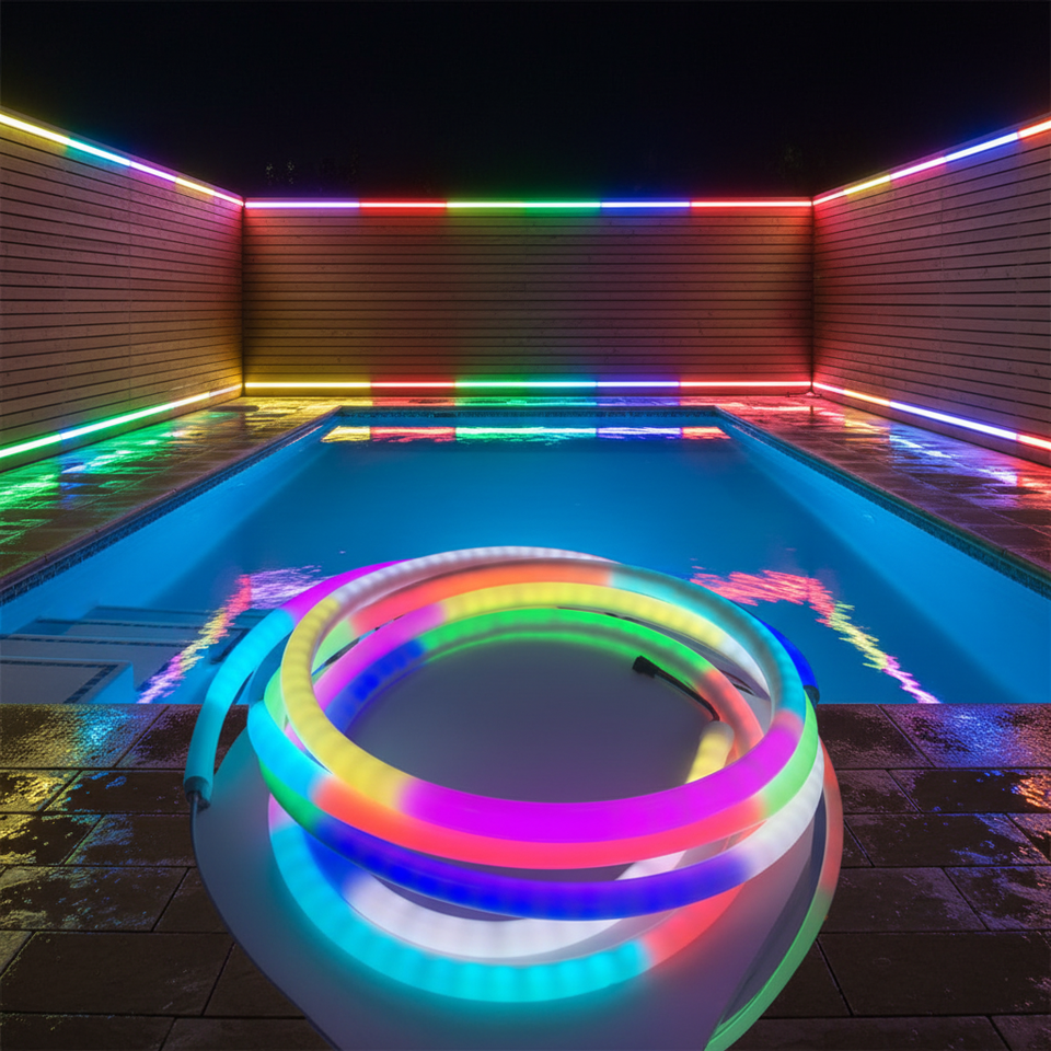 Tira de neón de PVC direccionable Flex 360 grados cuadrada RGB RGBW RGBIC 12V 24V 110V 220V WS2815 de 20mm 40mm IP67 con 3 años de garantía 1cm