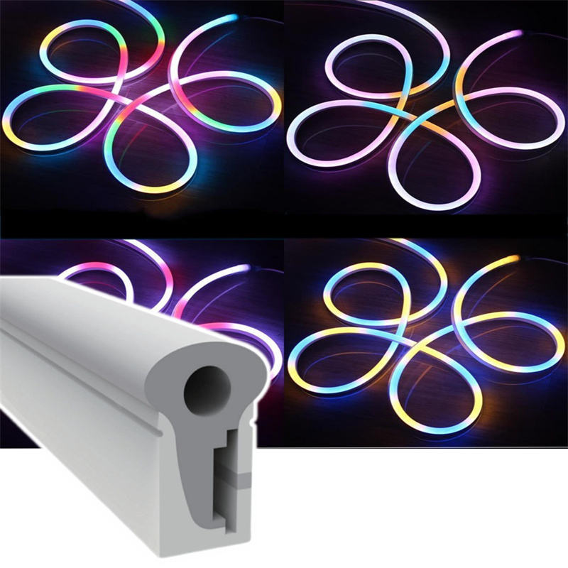 Flex RGBW Luz de neón Resalte Arquitectónico 24V Cambio de color Tubo de silicona flexible Lentes de globo lechoso Cambio de color de píxeles