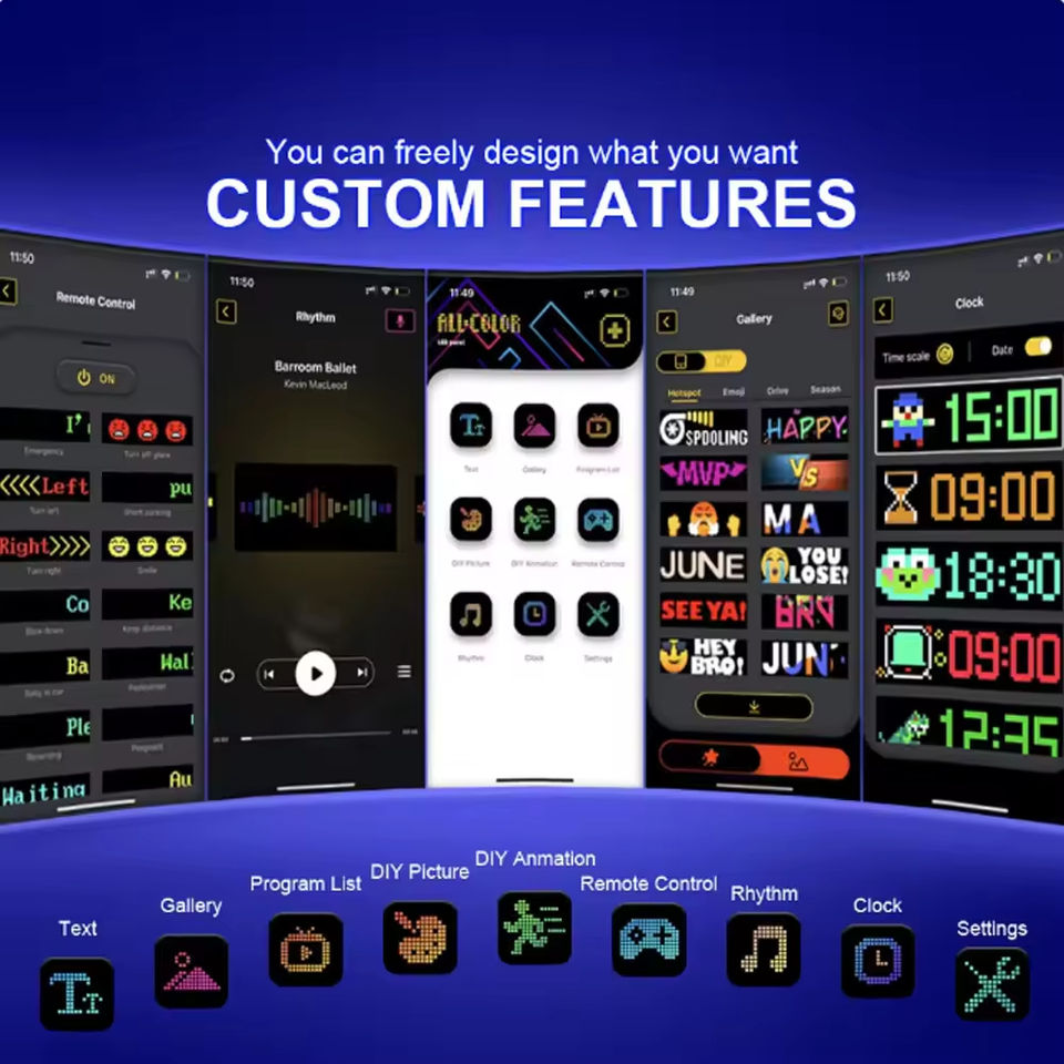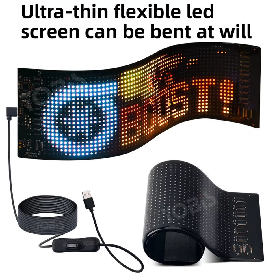 Pantalla LED Flexible, Resistente al Agua IP65, 12V, Resistente a Altas Temperaturas, con Ventosa para Coche, Control Remoto por Aplicación, Universal