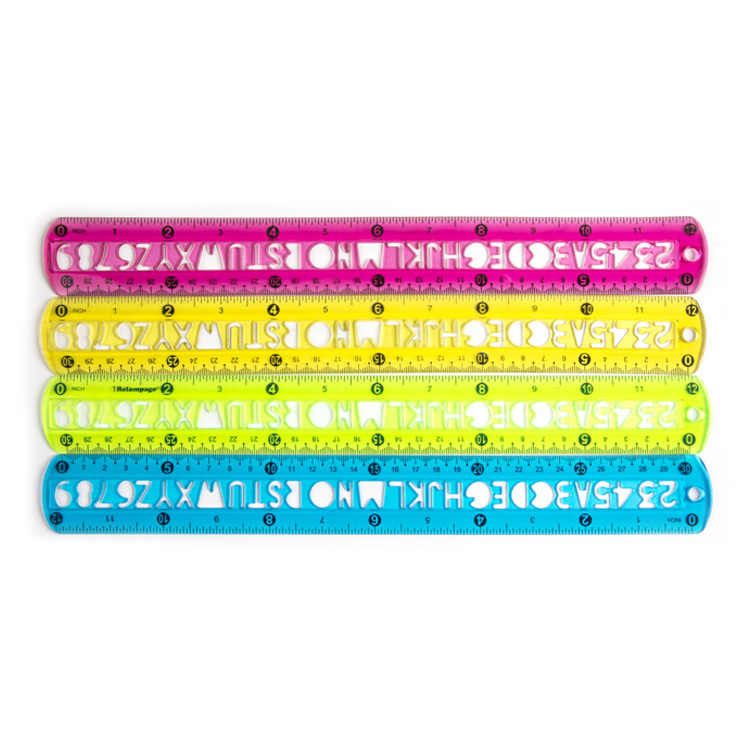 Regla curva de plástico Flexible de PVC para estudiantes, regla recta con diseño de flores, número personalizado y plantilla de alfabeto, 30 Uds.