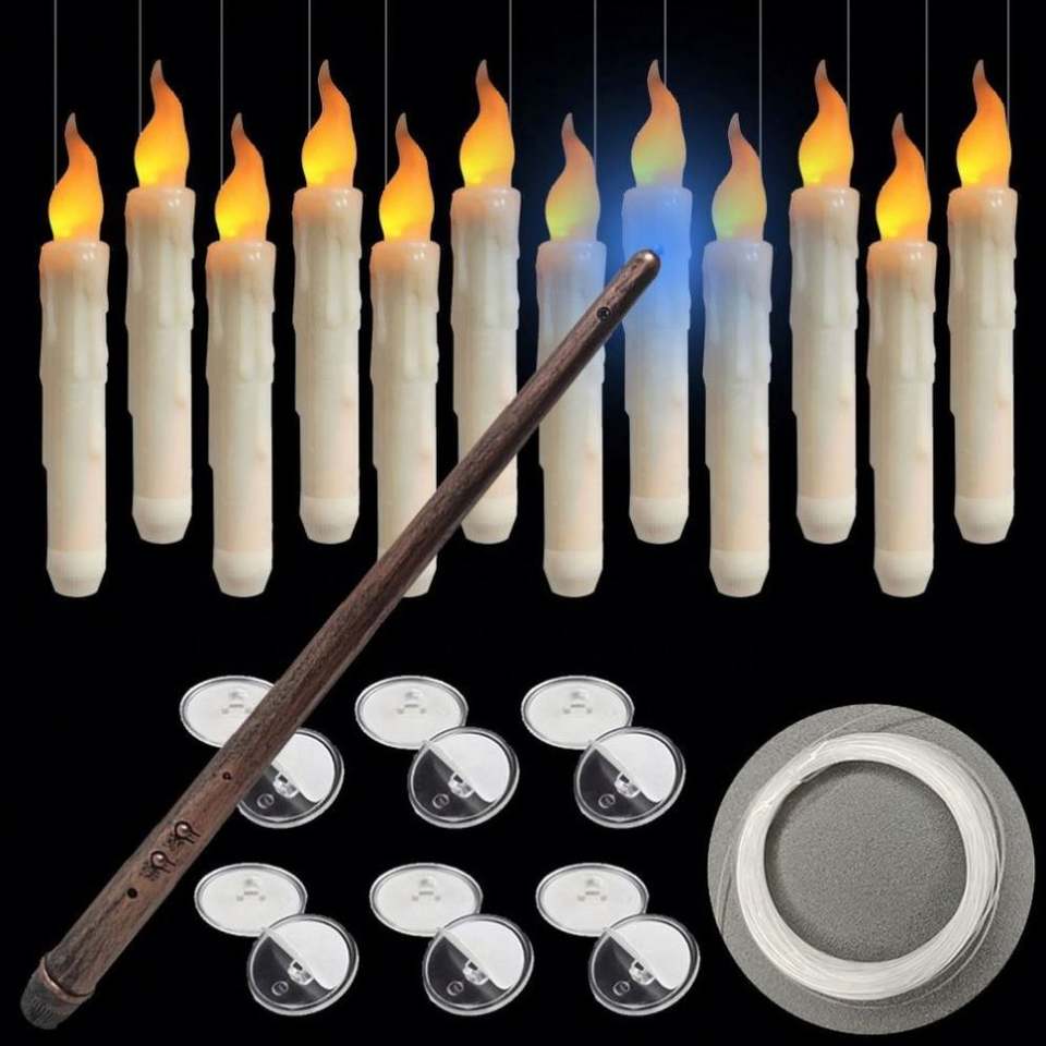 Velas Flotantes con Control Remoto, Decoración Navideña Portátil, Luz Cálida Blanca y Amarilla Parpadeante, LED sin Llama, con Pilas, 12 Unidades
