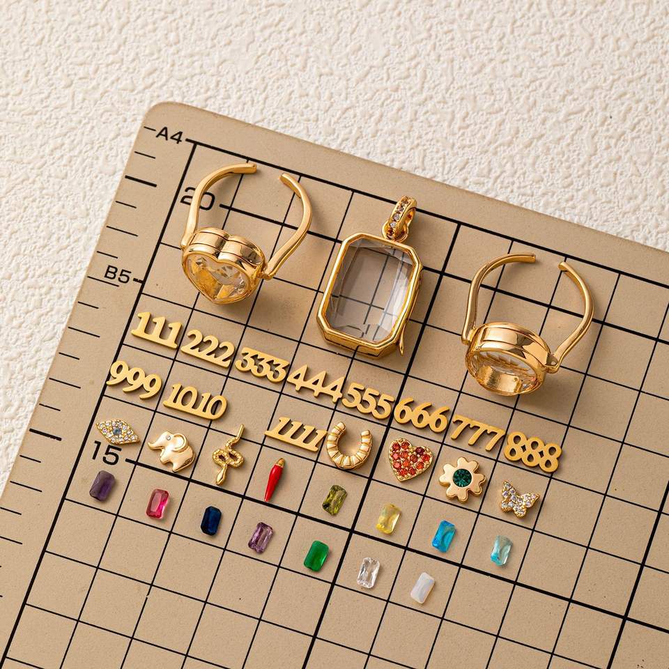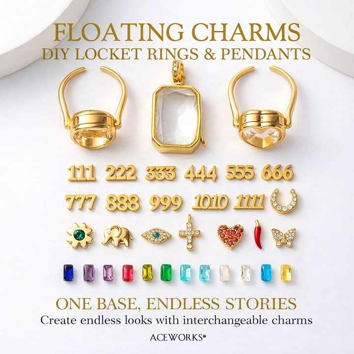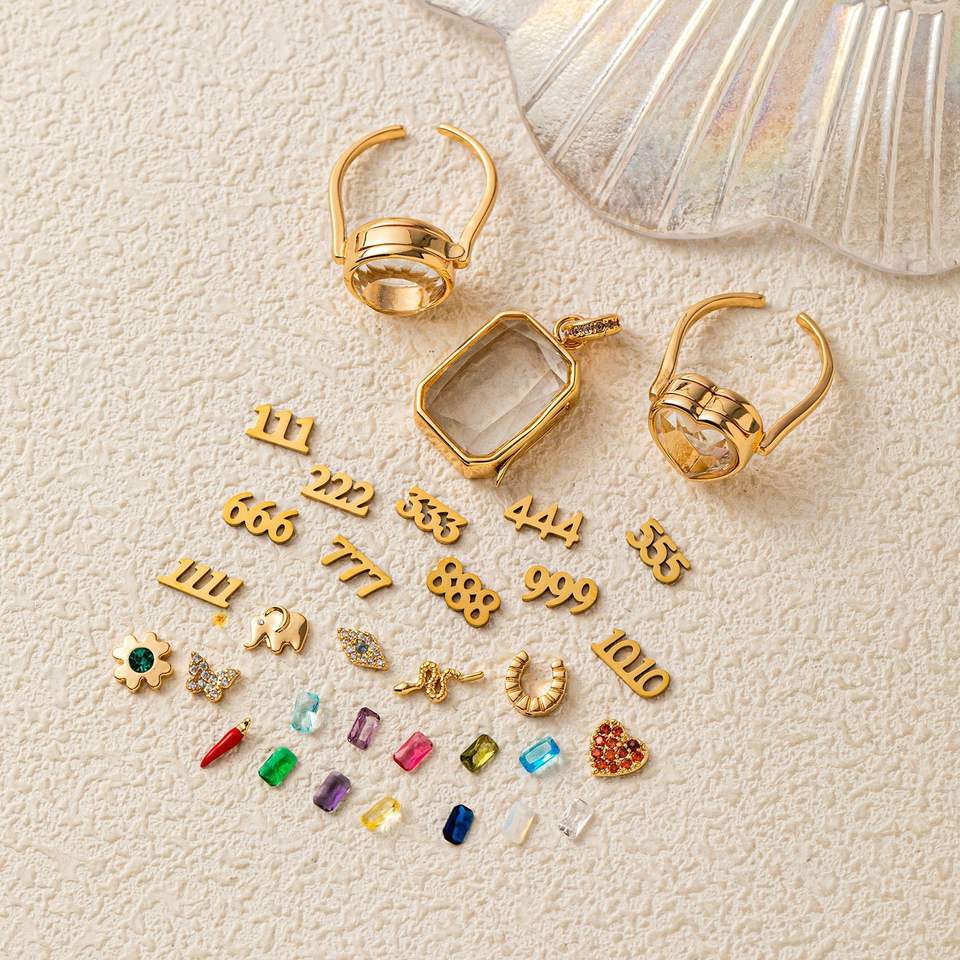 Anillos y Colgantes con Dijes Flotantes | Base y Dije Intercambiables de Latón Chapado en Oro de 18K para Joyería DIY: Piedras, Número de Ángel