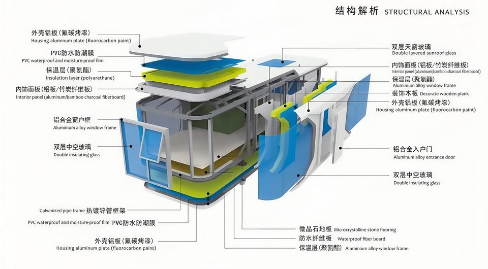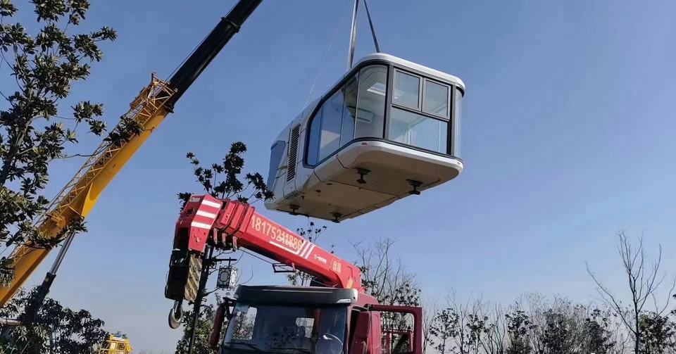 Base de Pontón Flotante, Mini Cabaña Prefabricada para Lago, Casa Cápsula Estilo Embarcación