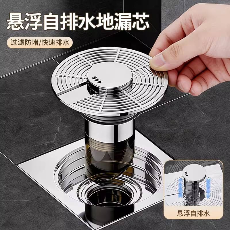 Desagüe de Piso Flotante Autodrenante, Circular, Anticorrosión, Conexión Roscada, para Baño y Ducha