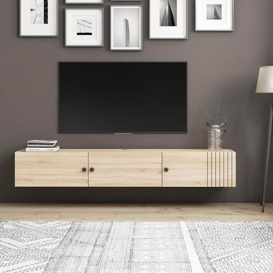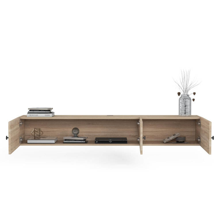 Soporte de TV flotante con luces LED Mueble de TV montado en la pared de 71 ''con puerta Centro de consola multimedia Estante de almacenamiento grande