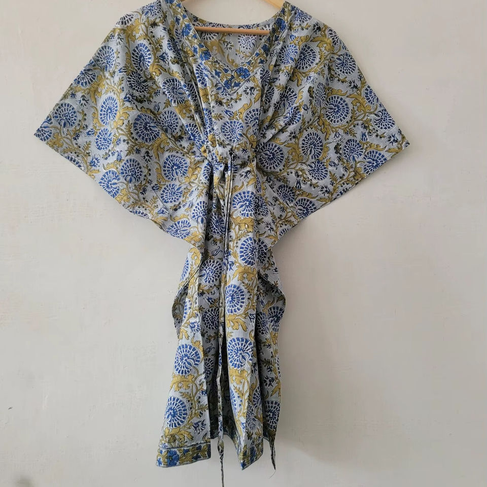 Kimono de Algodón con Estampado Floral, Cierre con Cordón, Elegante para Verano, Cuello en V, Motivos Florales Intrincados, Alta Calidad, Clásico