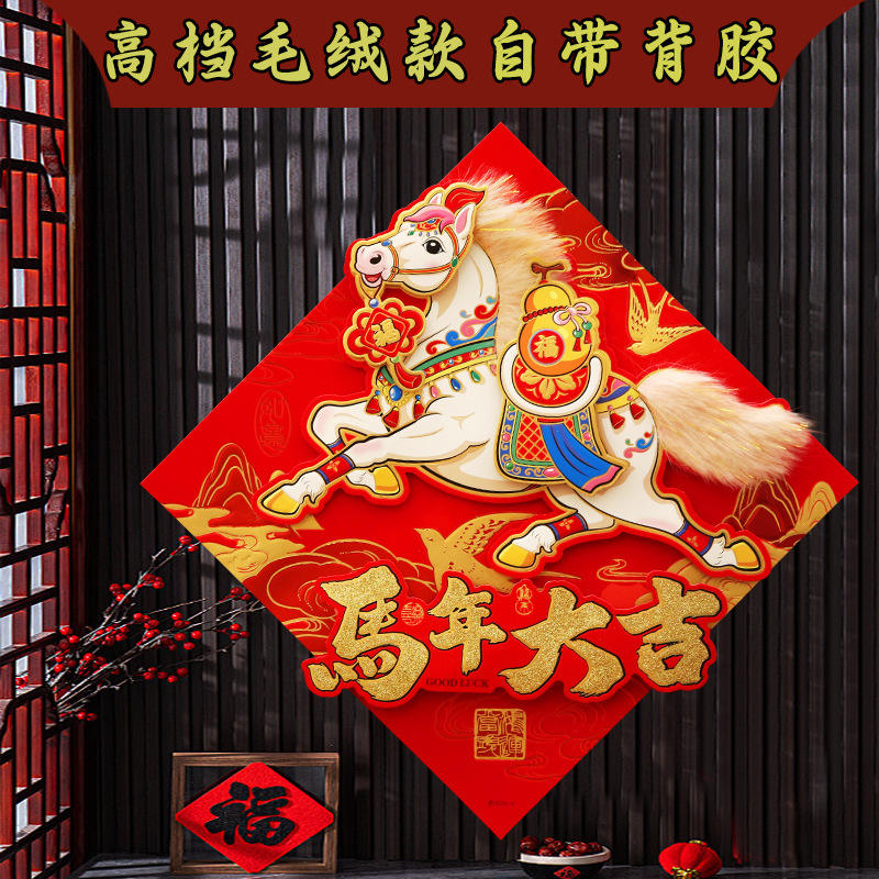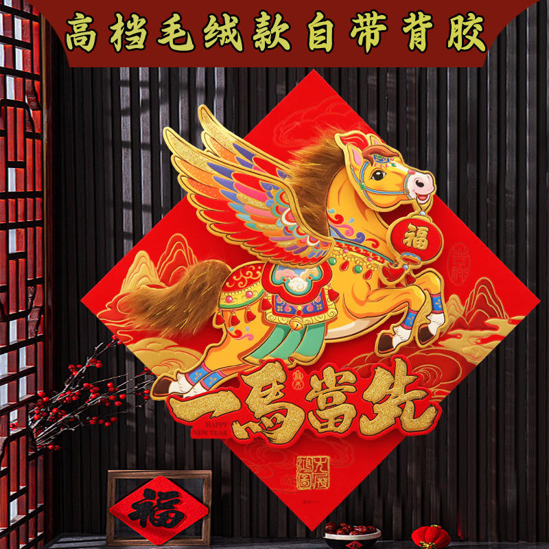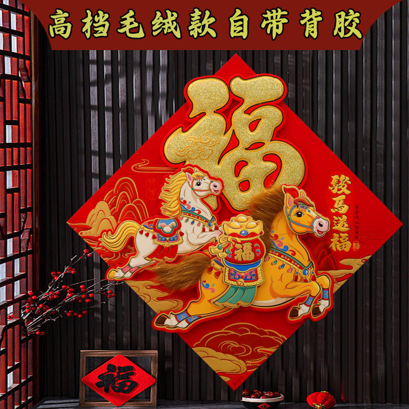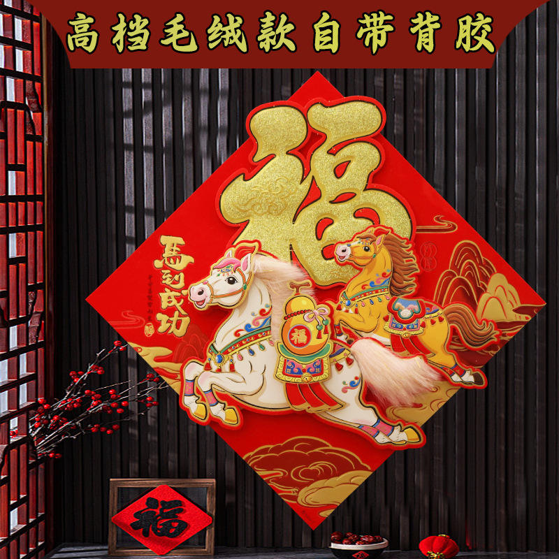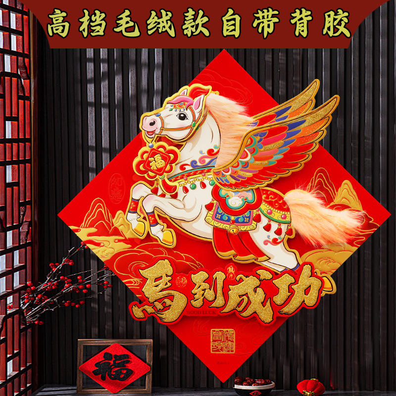 Pegatina de Fieltro con Diseño de Pegaso y Caracteres Fu, Forma de Diamante, Decoración para el Hogar de Año Nuevo Chino, Pieza Individual, Fieltro No Tejido