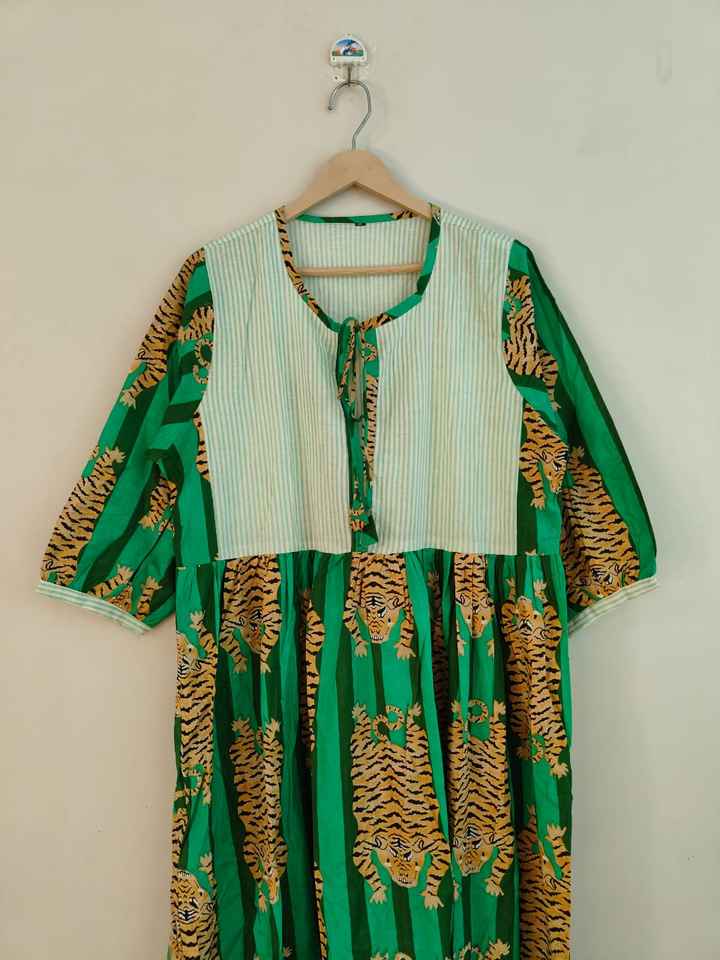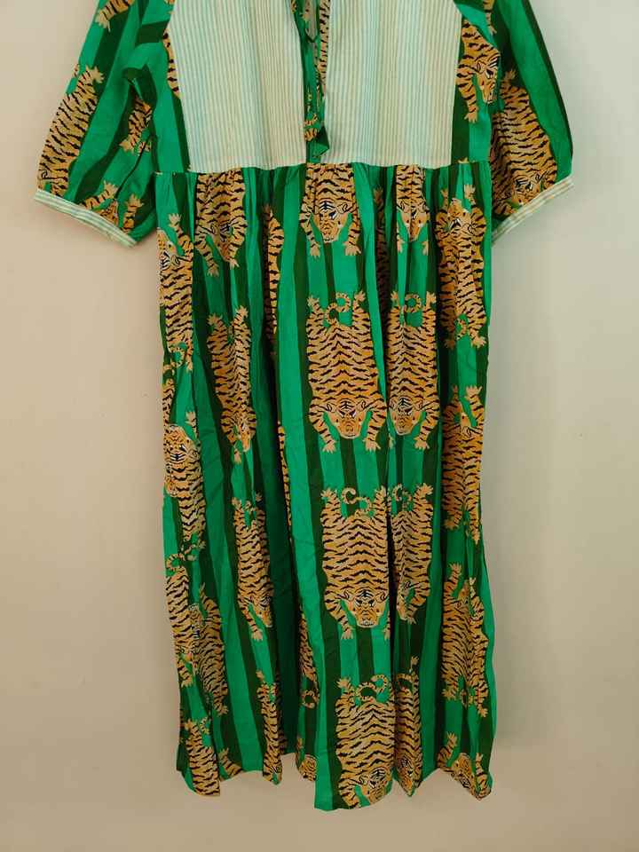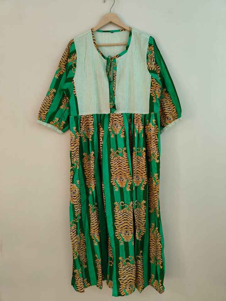 Vestido Largo Casual de Verano con Estampado de Tigre, Cuello en V, Manga Larga, Ajuste Holgado, de Algodón