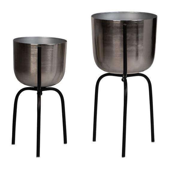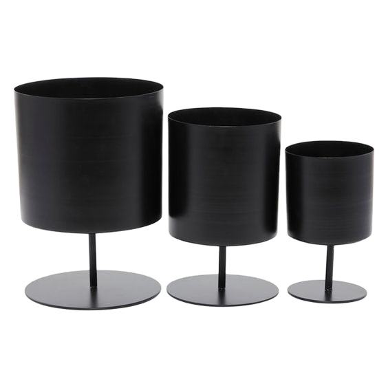 Juego de 3 macetas de suelo, maceta de hierro con lámina recubierta de polvo negro y macetas, juego de soporte de planta de Metal de alta calidad, artesanías