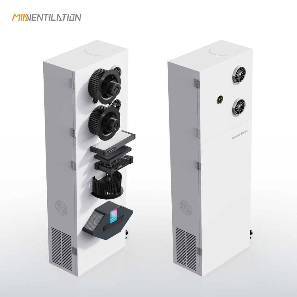 Sistema de Aire Fresco Vertical de Gran Flujo de Aire de 600m³/h con Motor de CA y ERV para Sala de Estar, Oficina y Escuela