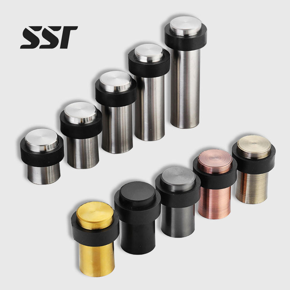 Diseño de protección de pared de pie Acero inoxidable Negro Oro Cepillado Tope de puerta de latón antiguo con amortiguador de Tope de puerta de goma