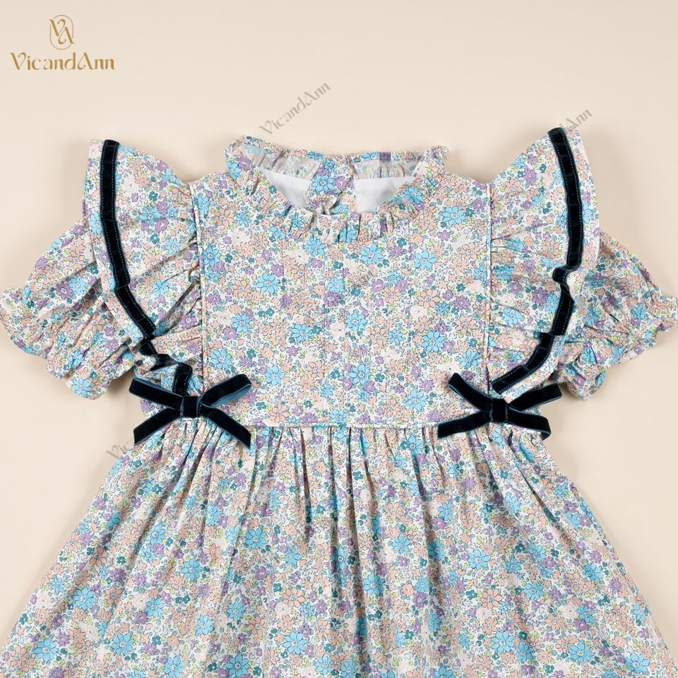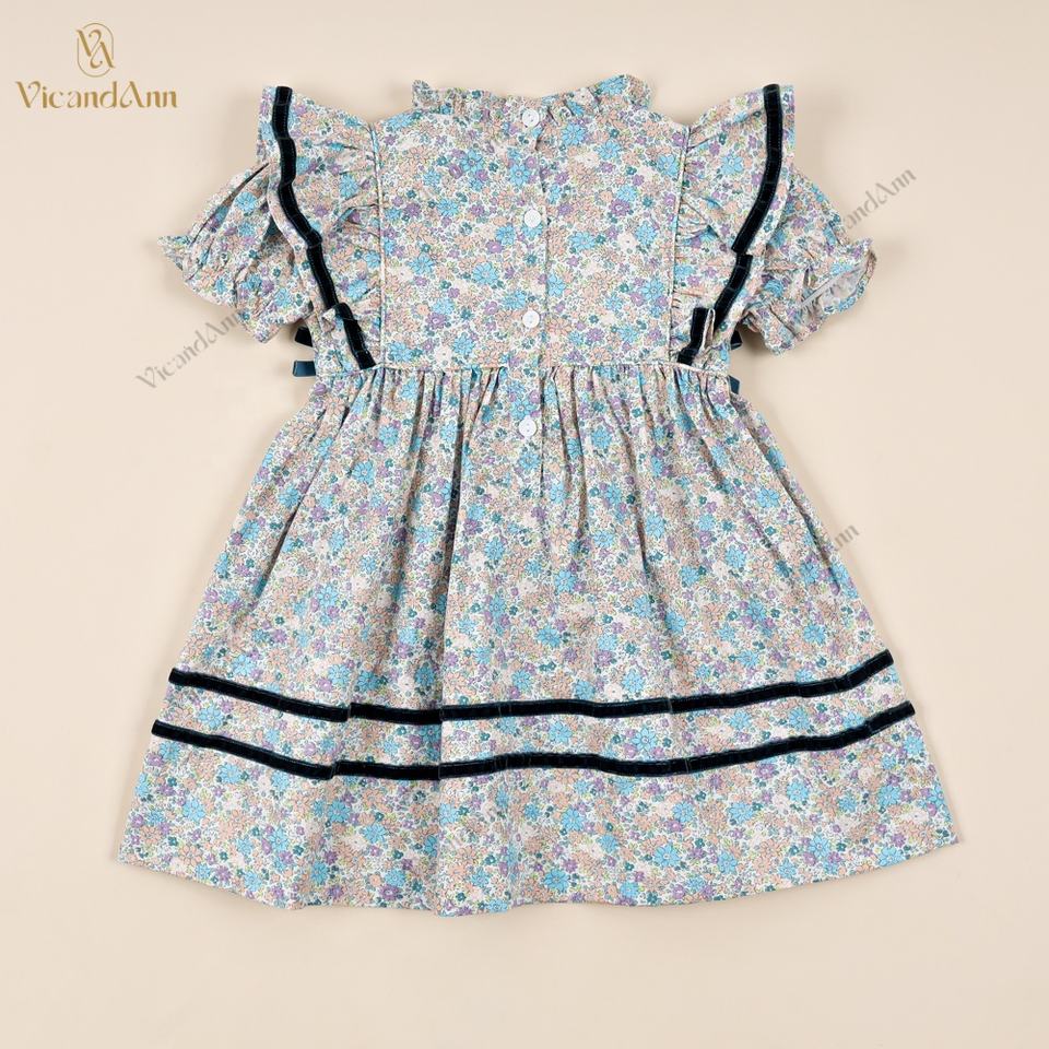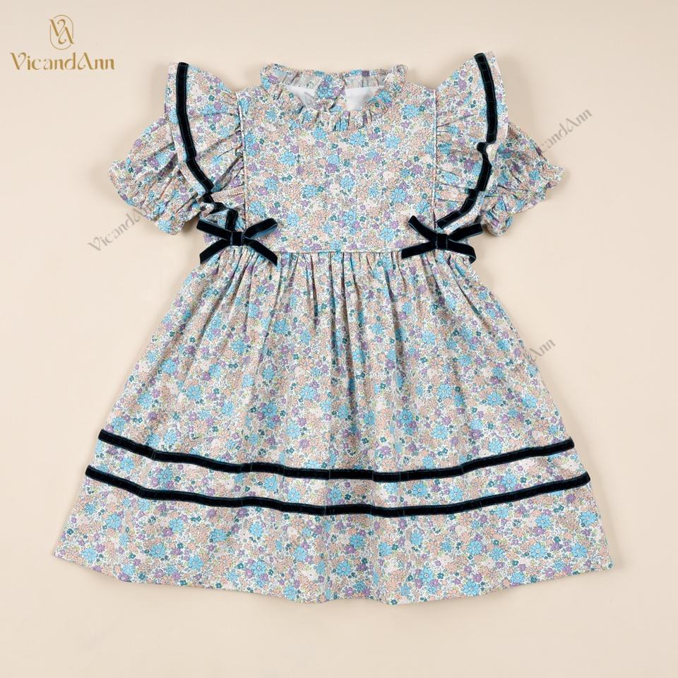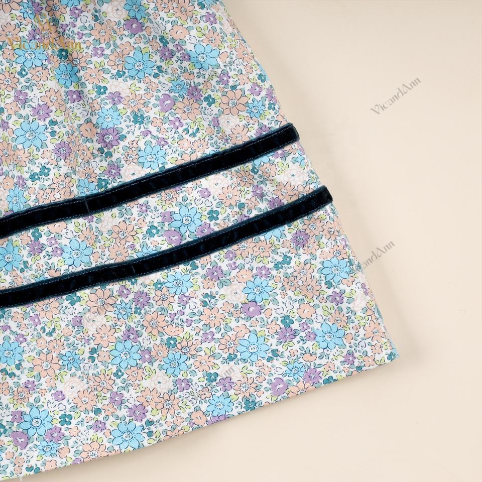 Ilusión de albaricoque, floral azulTipo de tela