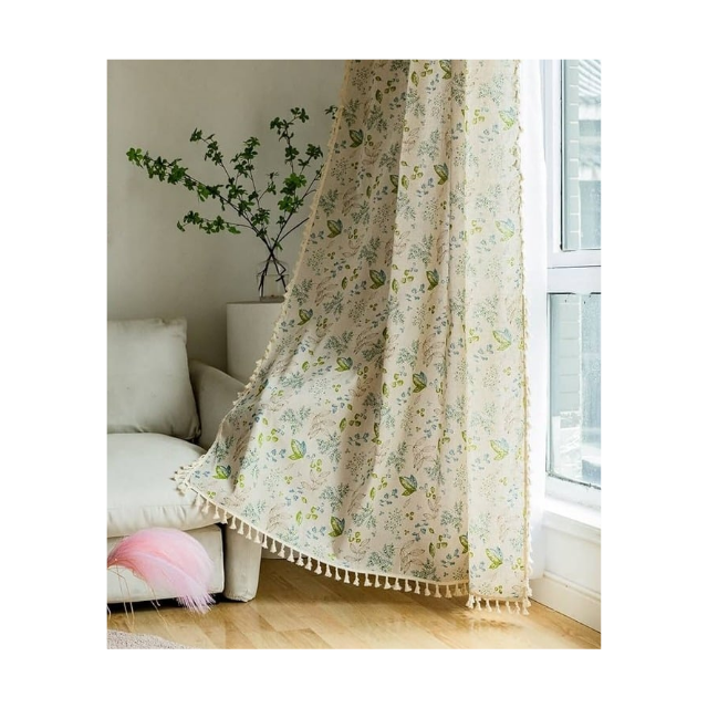 Tela Floral de 52x84 Pulgadas, 160GSM, con Filtro de Luz, Cortinas con Ojales, Acabado de Lino de Algodón GOTS, para Salas de Estudio y Salas de Estar, Suministro para Exportación a Granel
