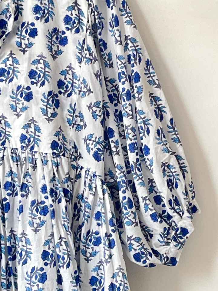 Vestido de algodón con estampado de bloques florales hecho a mano verano Midi longitud estilo bohemio algodón puro ligero Casual ropa de día ética