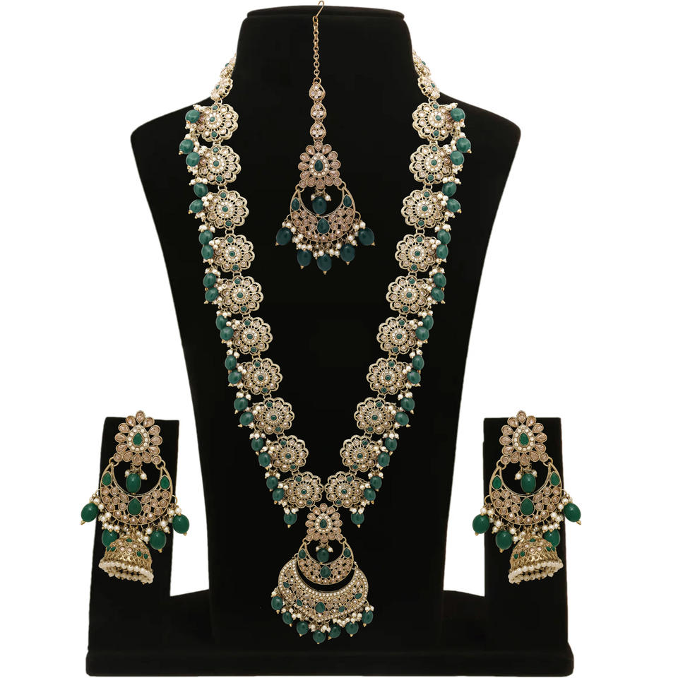 Conjunto de Collares Largos con Diseño Floral Chandbali Elegance Reverse AD