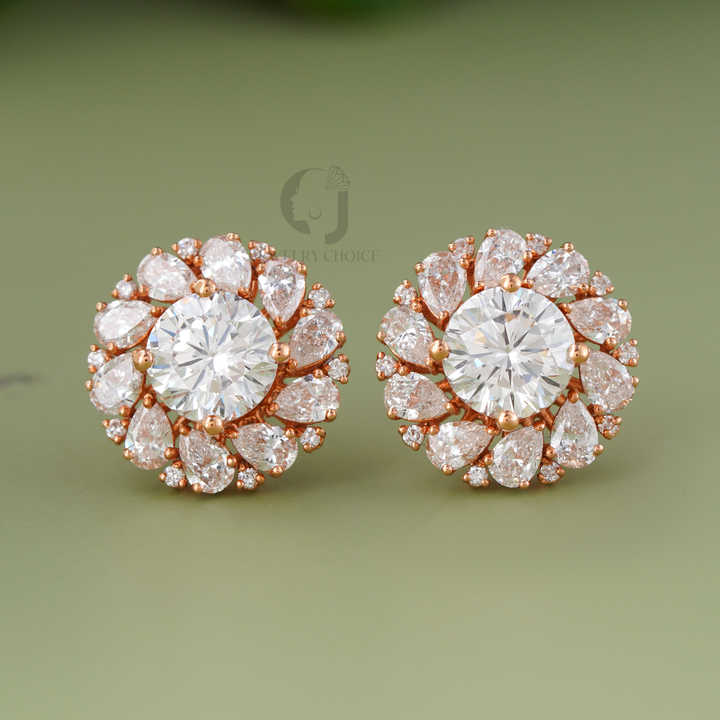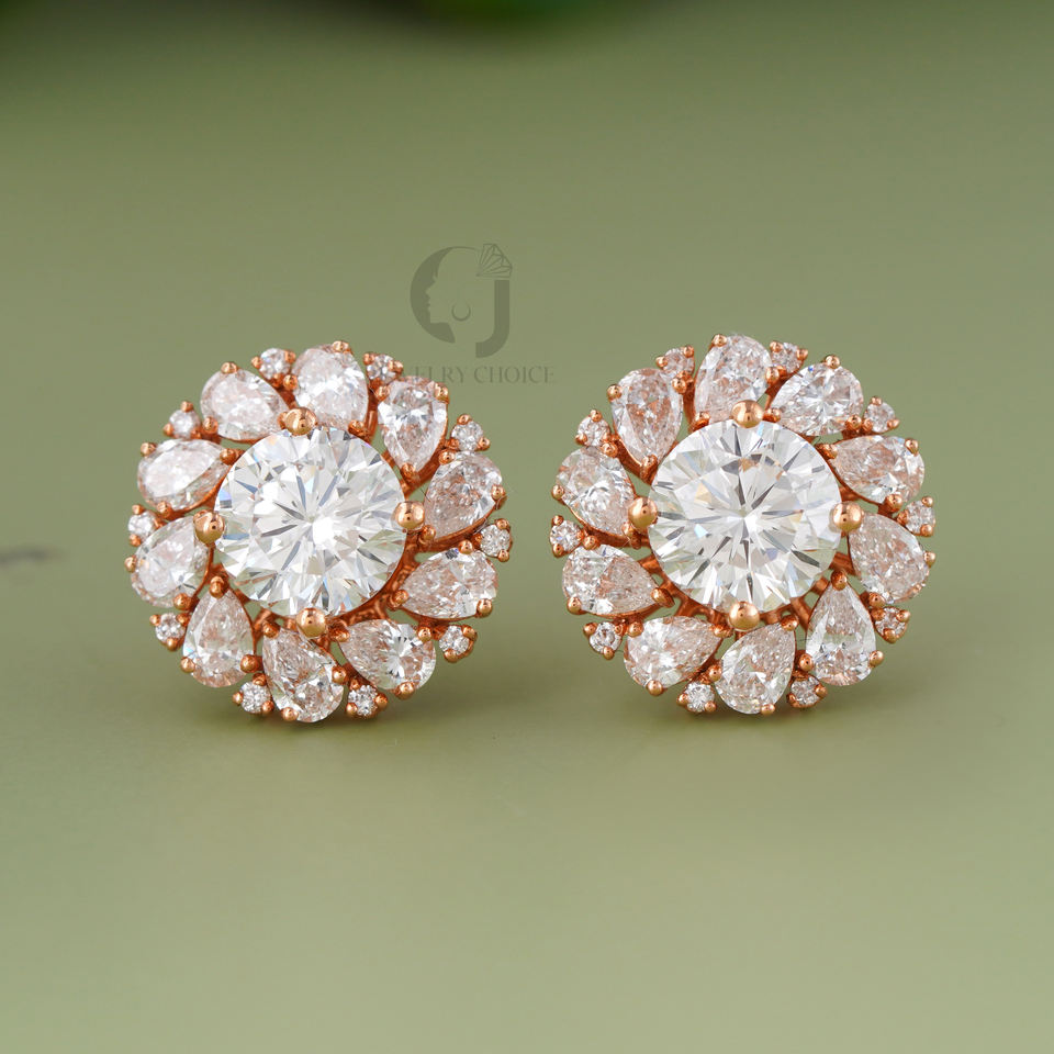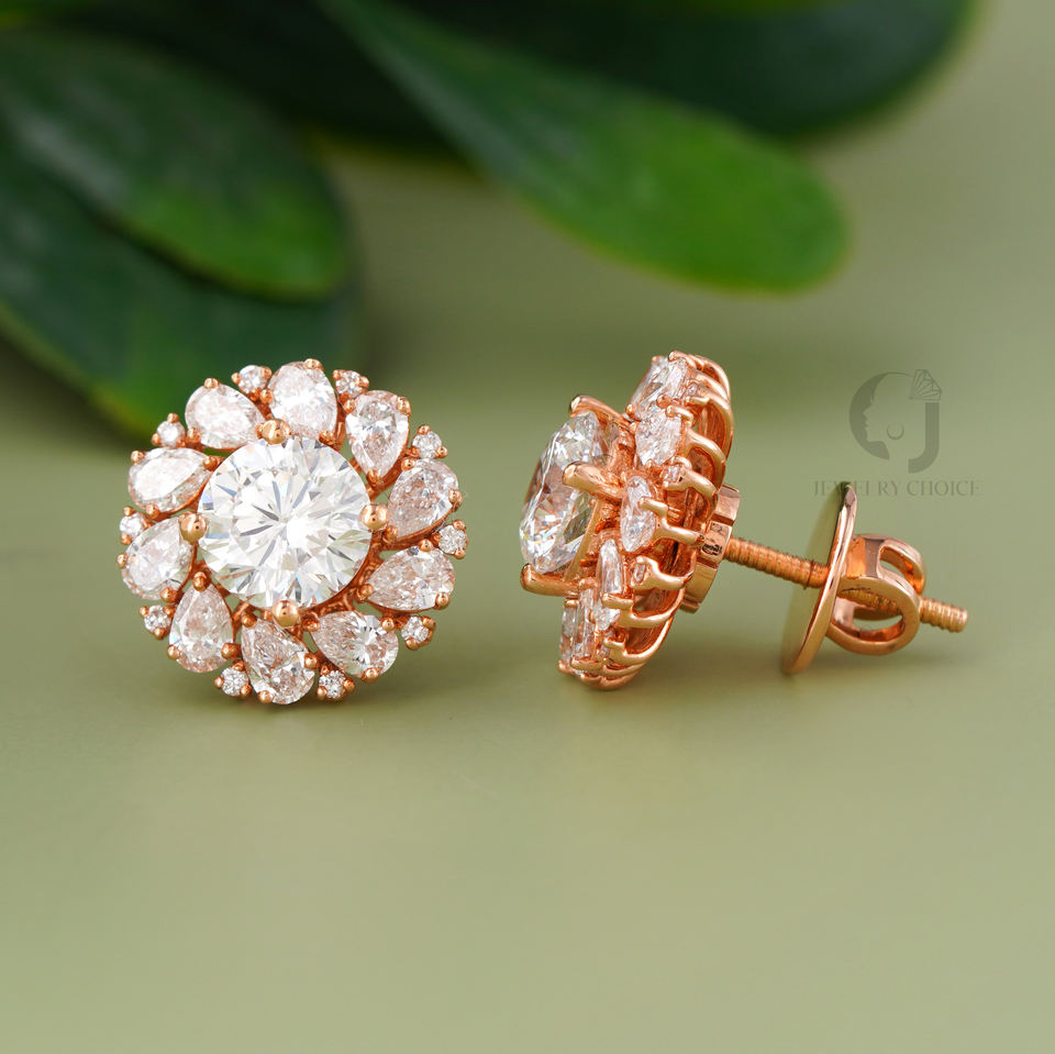 Pendientes de Diamantes Cultivados en Laboratorio con Diseño Floral, Oro Rosa de 14K, VVS EF, Corte Redondo, Pera, Halo, 2.08CT, Regalo de Lujo