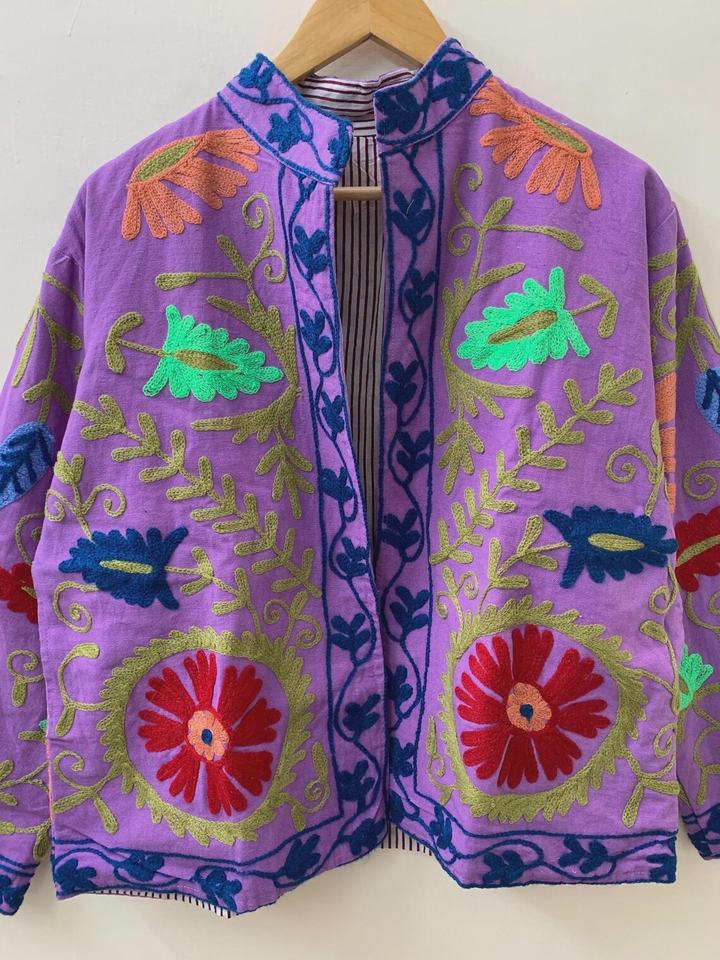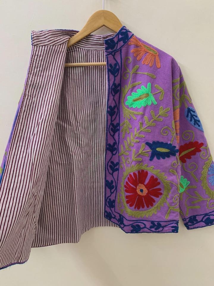 Chaqueta corta bordada de algodón floral Suzani Abrigo Suzani Chaqueta corta bordada Suzani