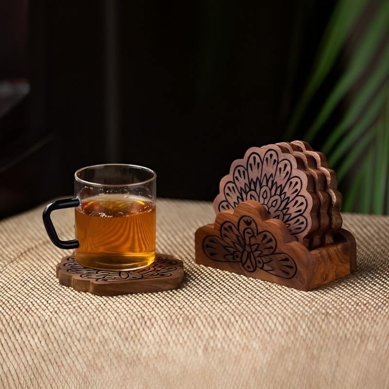 Juego de Posavasos con Diseño Floral y Soporte, Decorativos para Mesa, para Tazas de Té y Café, Hermosos Posavasos con Logotipo Personalizado