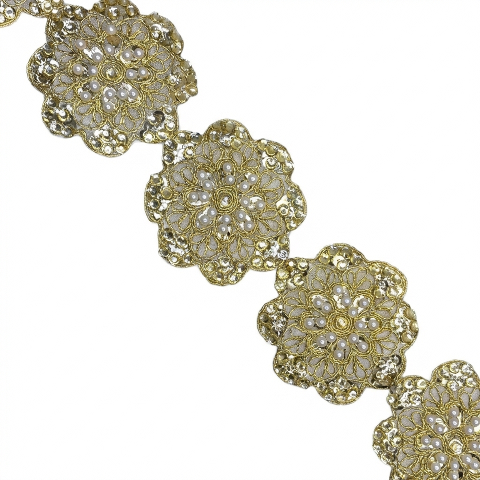 Encajes Bordados con Diseño Floral y Perlas, Adornos Nupciales de Flores 3D de Lujo, Accesorios de Prendas con Perlas Blancas Hechas a Mano
