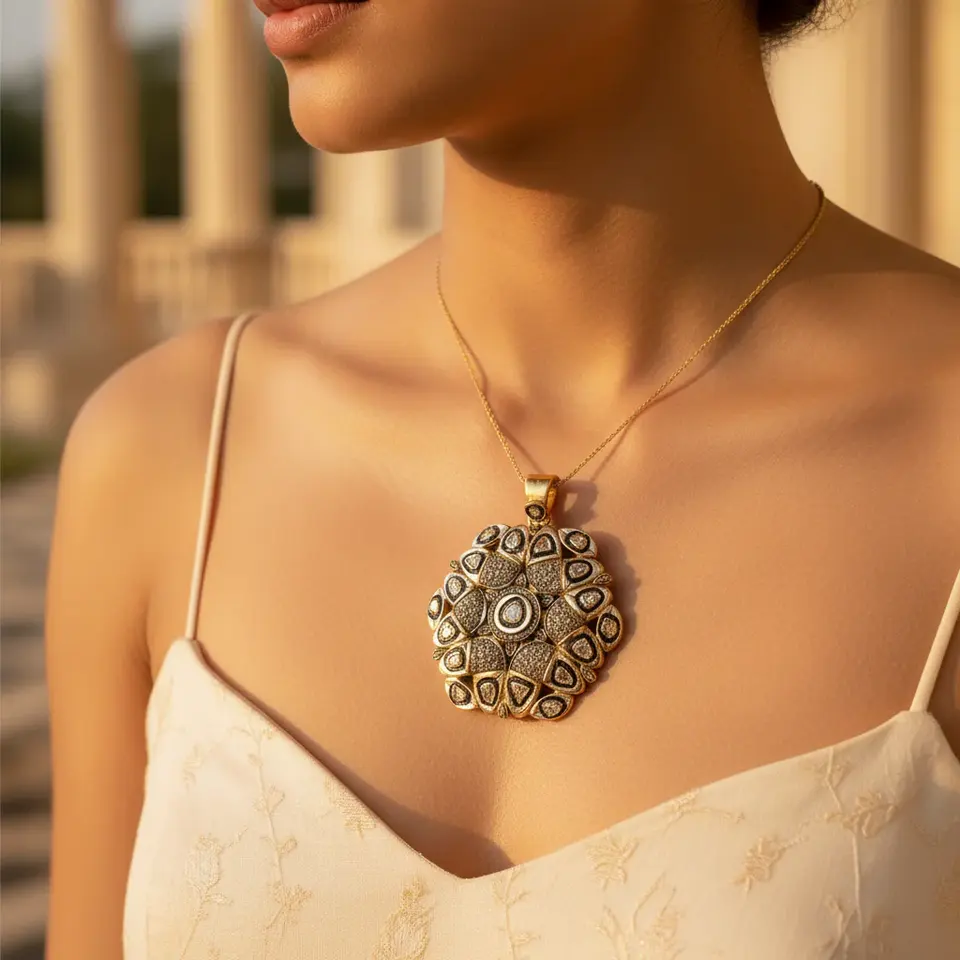 Collar con Colgante de Racimo de Diamantes Florales para Mujer - Chapado en Oro