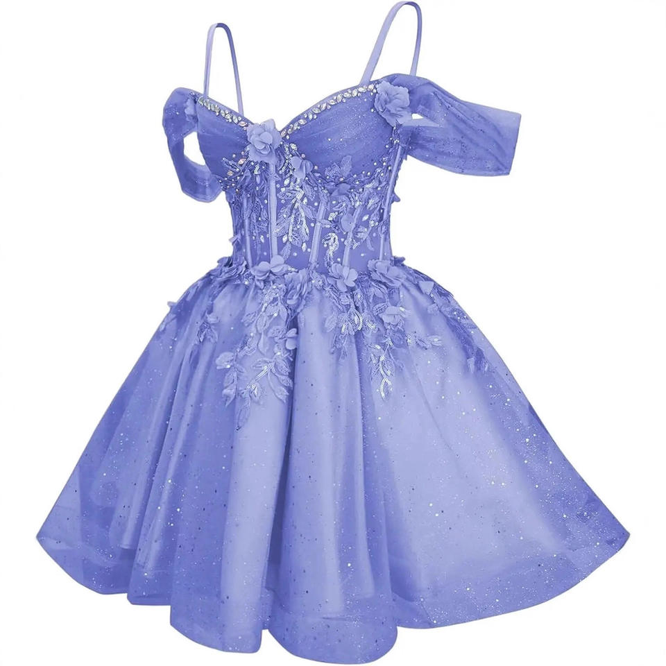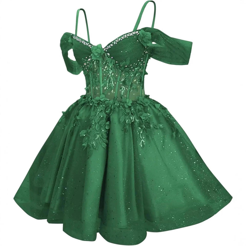 Vestido de Tul con Flores para Graduación, Vestido de Fiesta para Adolescentes, Hombros Descubiertos, Brillante, Vestido de Cóctel Personalizado
