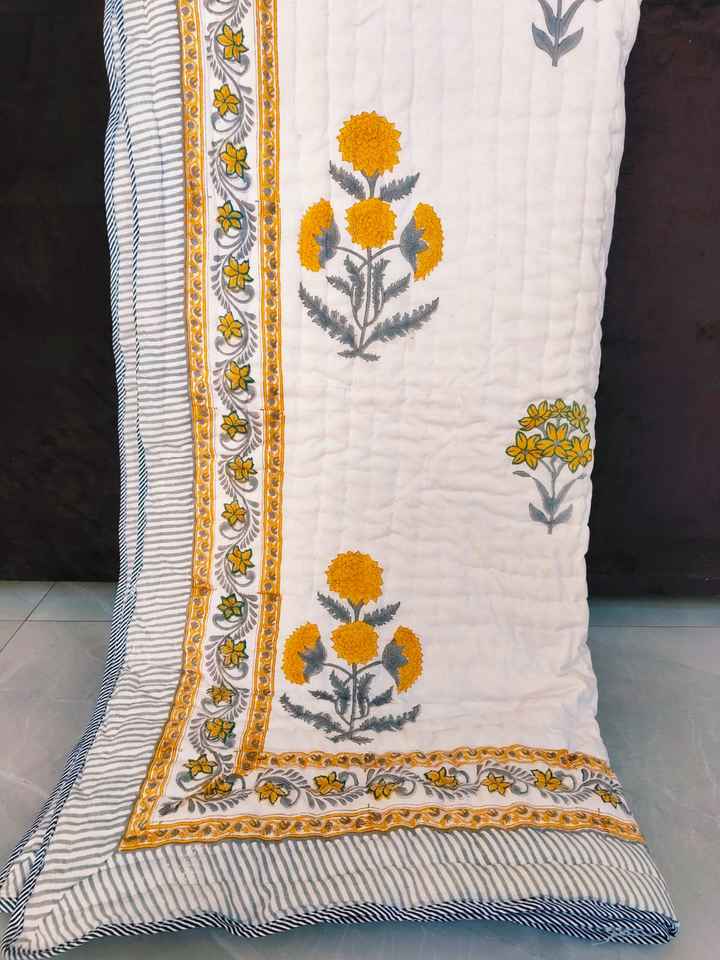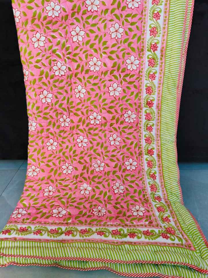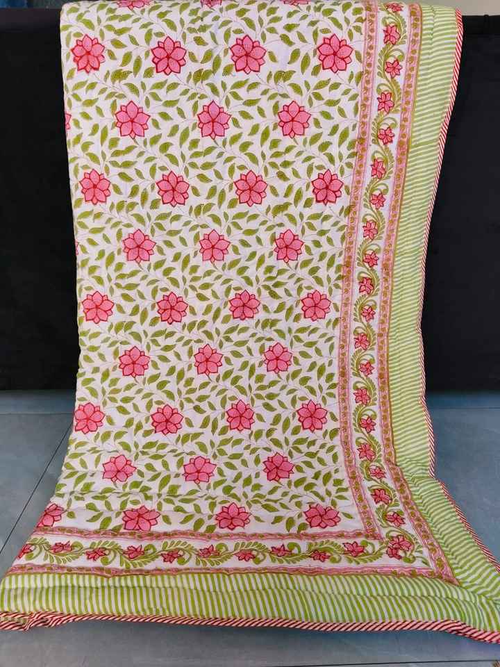 Edredón Floral Estampado a Mano, Colcha de Algodón Botánico Jaipuri Razai Hecha a Mano, Reversible con Estampado de Flores
