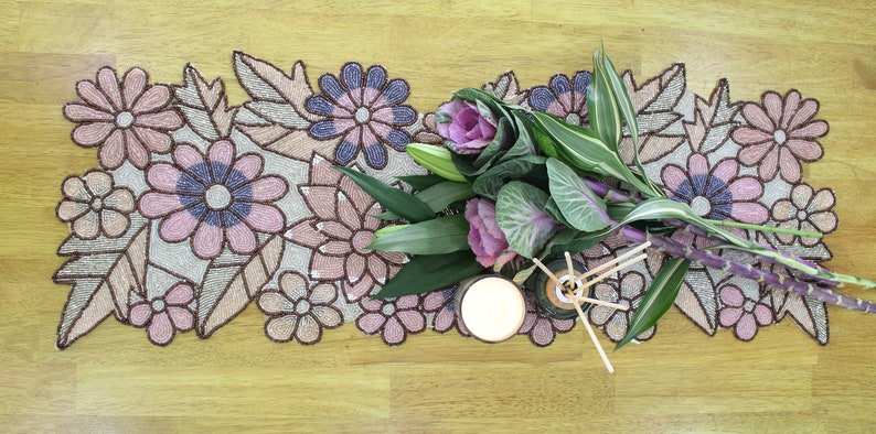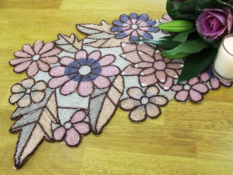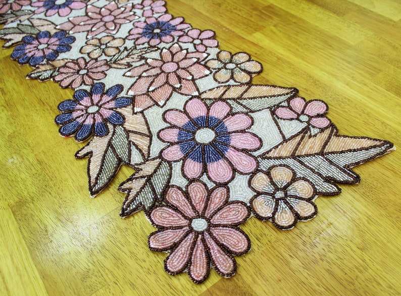 Camino de Mesa con Cuentas, Técnica de Tejido Personalizada para Decoración Navideña Festiva en el Hogar y Hoteles, Hecho a Mano