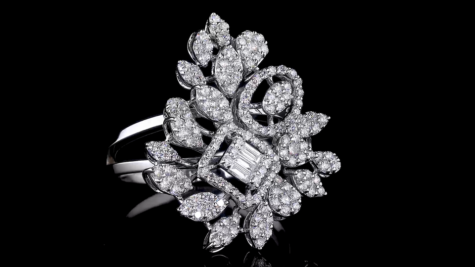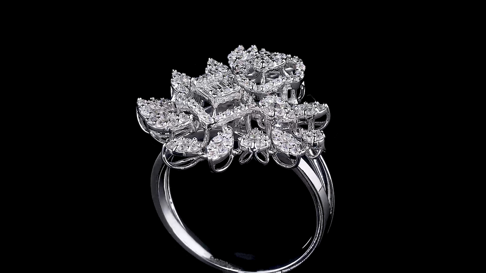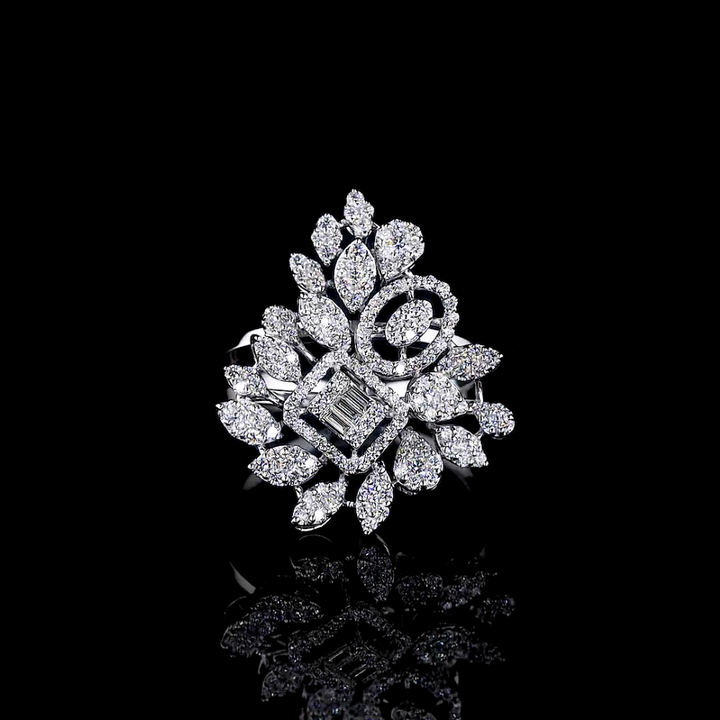 Anillo de Diamantes Cultivados en Laboratorio de Oro de 14K con Diseño Floral Ilusorio para Mujer, Anillo de Lujo con Certificado IGI, Regalo de Rodio, Anillo de Compromiso o Boda