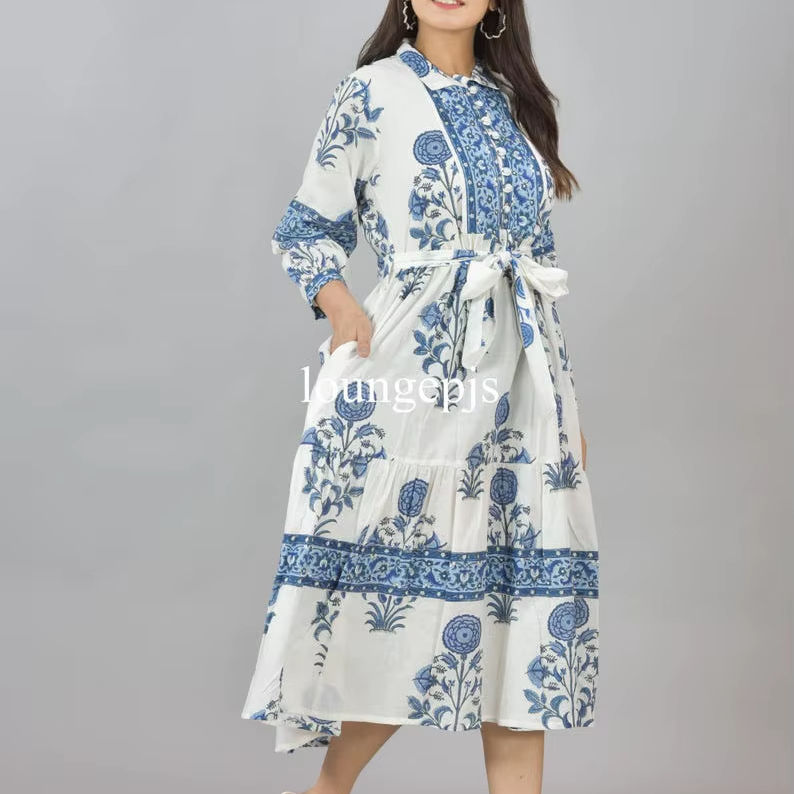 Vestido Floral Jaipur, Vestido de Algodón Orgánico Estampado a Mano, Vestido Ligero de Verano para Mujer