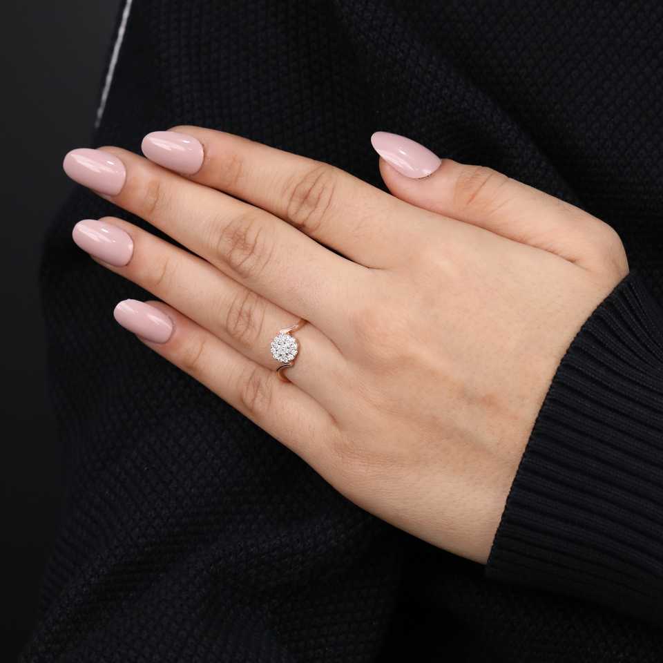 Anillo de Compromiso con Diamantes de Laboratorio en Forma de Racimo Floral, Elegantes Anillos de Diamantes para Novias