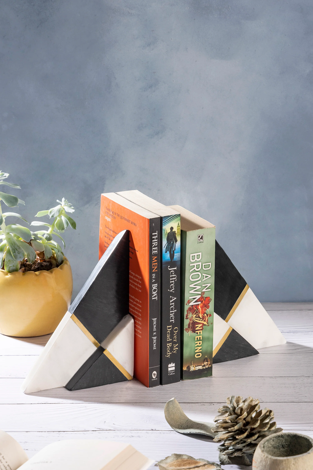 Sujetalibros de mármol Floral de calidad superior, organizadores de escritorio con incrustaciones de latón, material escolar y de oficina, soporte para libros