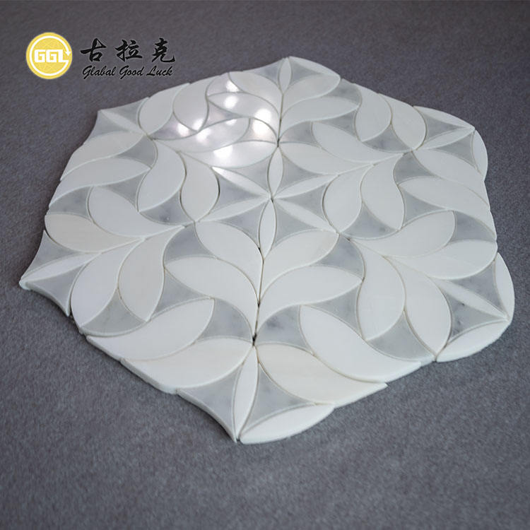 Nombre del Producto:Mosaico de Mármol Floral con Patrón de Chorro de Agua