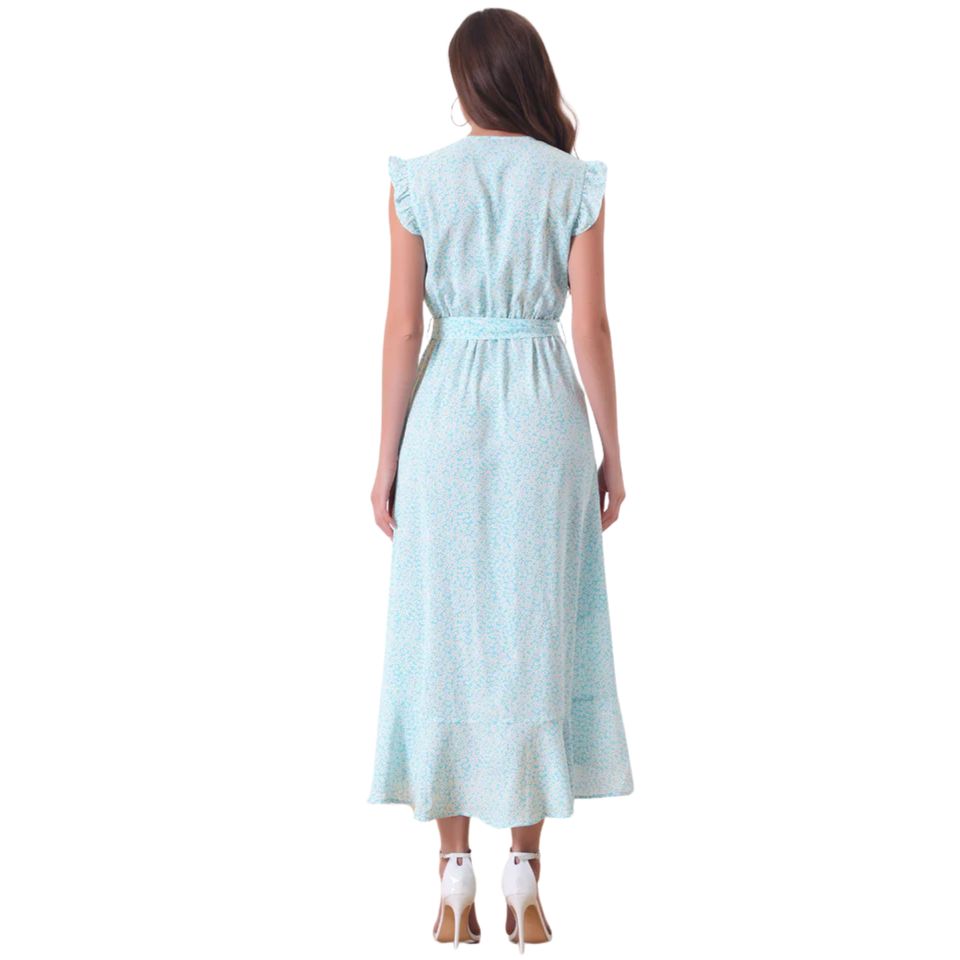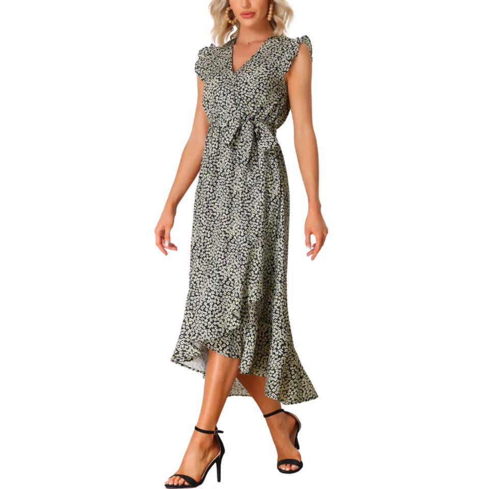 Floral Midi Sundress con cuello en V con cinturón Bodycon con volantes sin mangas Diseño Digital Impreso Tejido Método de tejido