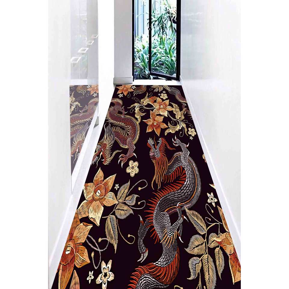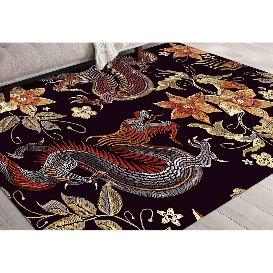 Alfombra con Estampado de Dragón Floral Myth - Exquisita Alfombra de Dragón Chino, Alfombra de Chenilla