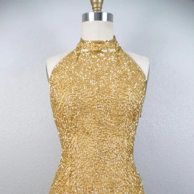 Patrón Floral con cuentas bordado vestido de cóctel negro antiestático vestido de fiesta de noche lentejuelas largo de longitud completa sin mangas para
