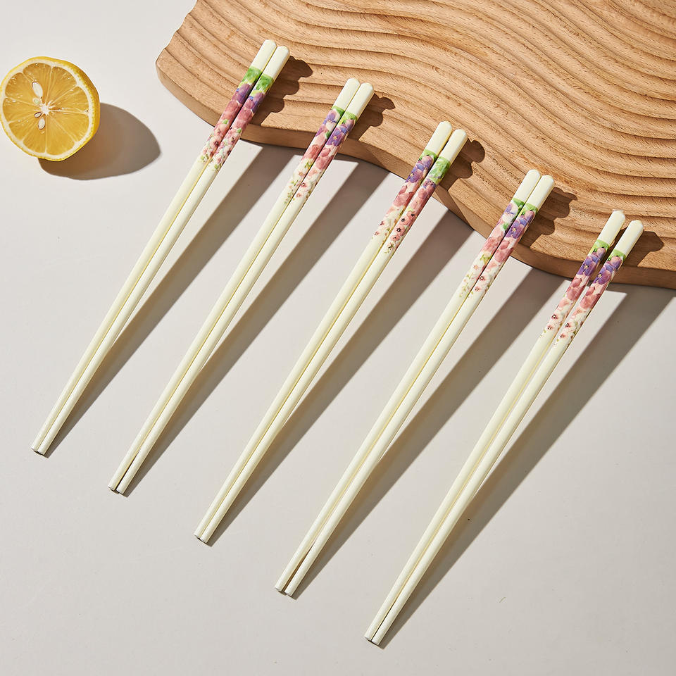 Juego de palillos de cerámica con diseño floral, 5 pares, antideslizantes, resistentes a altas temperaturas, para uso doméstico, con textura