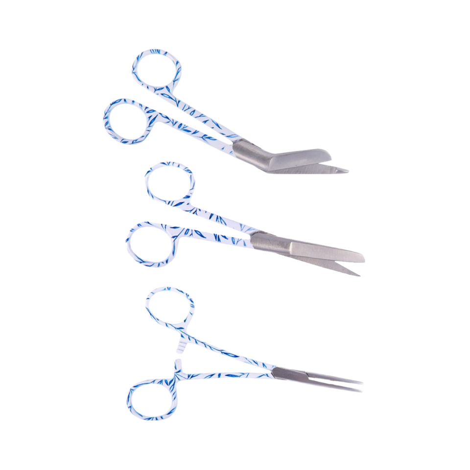 Patrón floral Base ecológica Instrumentos quirúrgicos Punta recta Pinzas de acero inoxidable Tijeras de vendaje Hemostatos