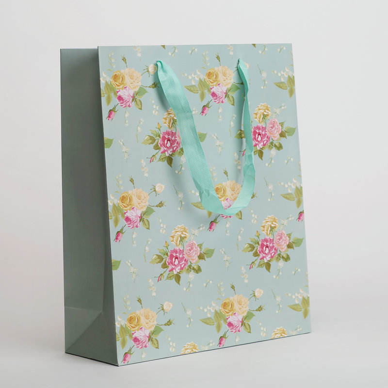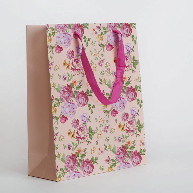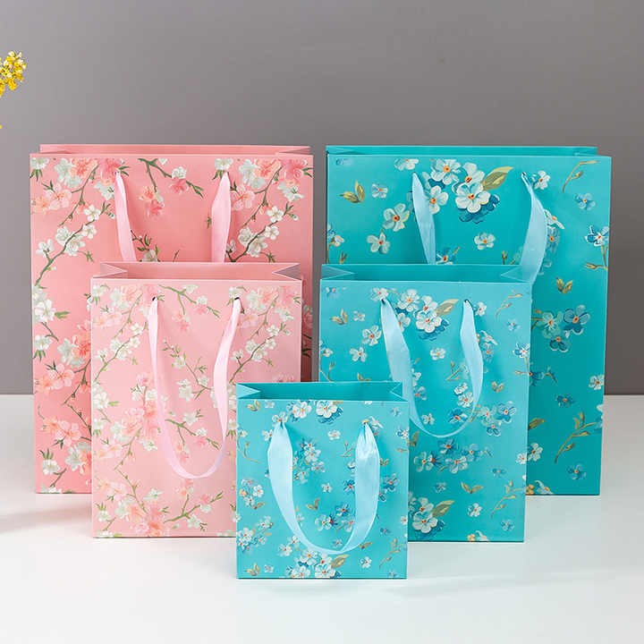 Bolsa de papel Kraft con estampado de patrón Floral, para compras, de lujo, para cosméticos, Boutique, bolsas de regalo de papel grueso, precio al por mayor