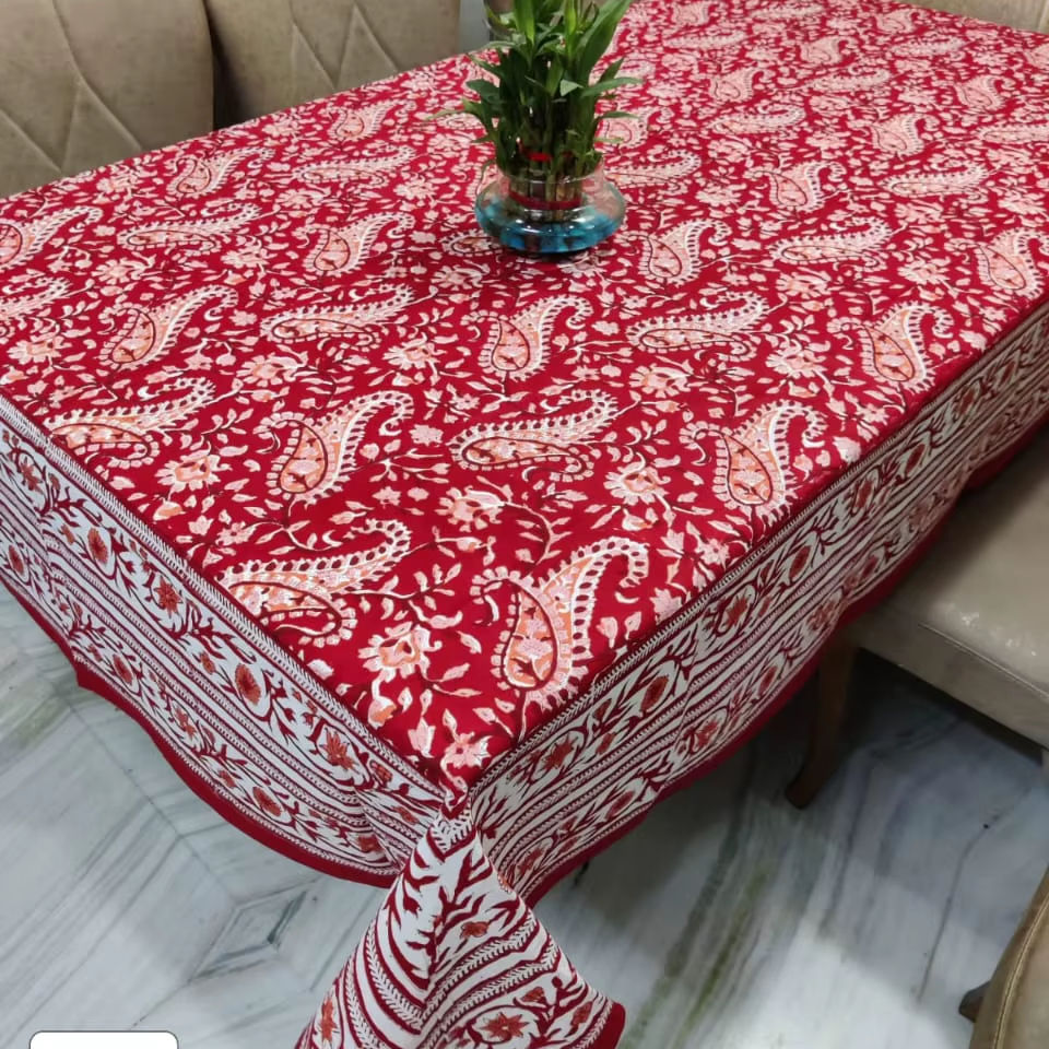 Mantel elegante con estampado de algodón 100% Floral, bloque hecho a mano, estampado tradicional, rectángulo, Diseño Artesanal, cubierta de mesa