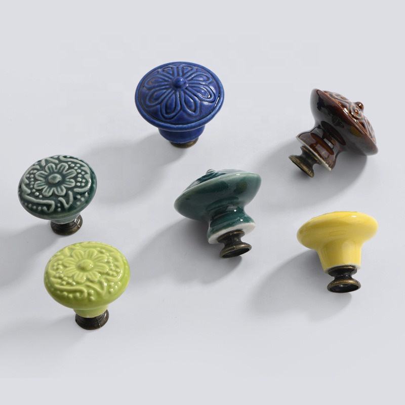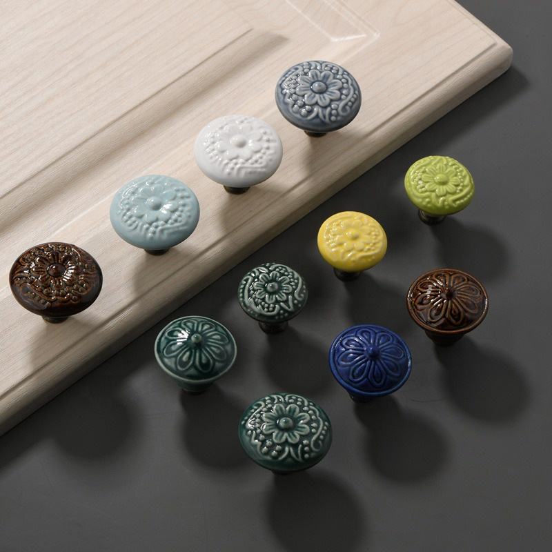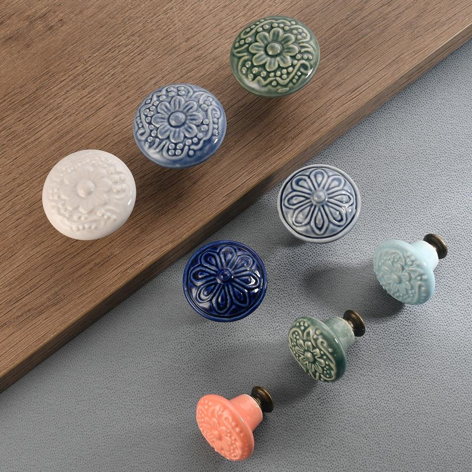 Gabinete de cerámica con relieve Floral, tiradores de cocina, tiradores Vintage redondos de un solo agujero para tocador, dormitorio, cajón, armario