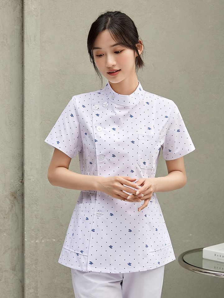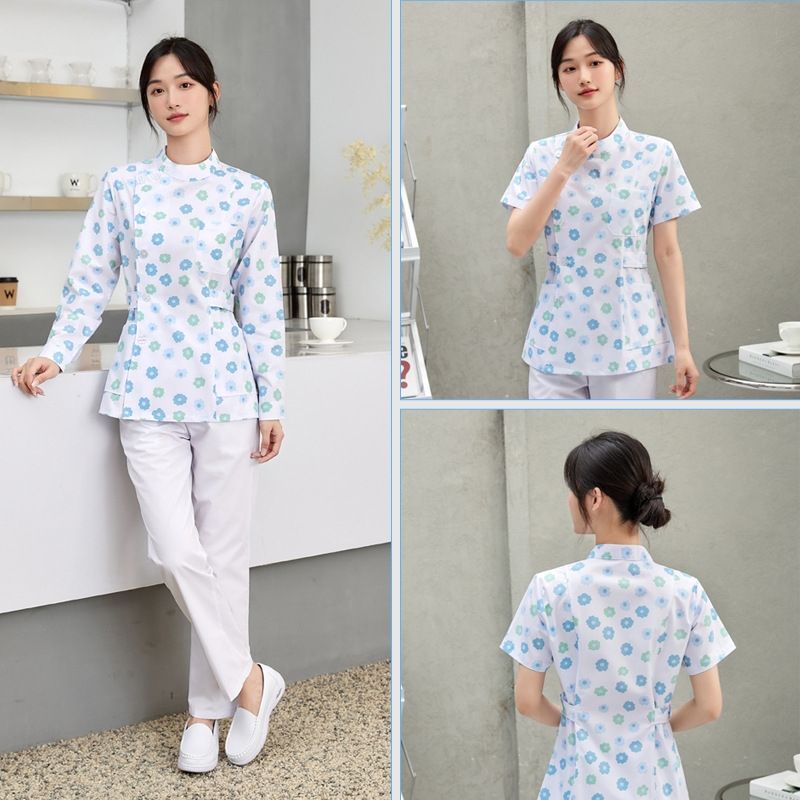 Traje dividido floral para enfermeras, ropa de trabajo de manga corta para Hogar de Ancianos, tela tejida de primavera y verano