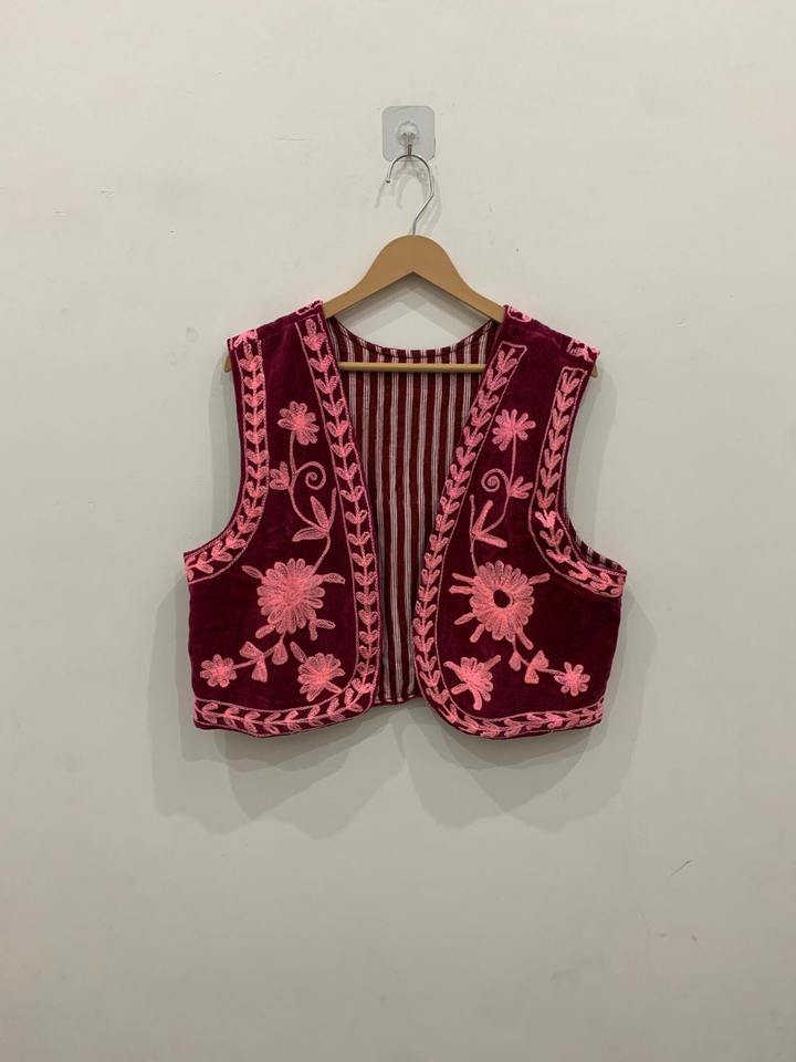 Nombre del producto:Chaleco abierto delantero hecho a mano del terciopelo de Suzani