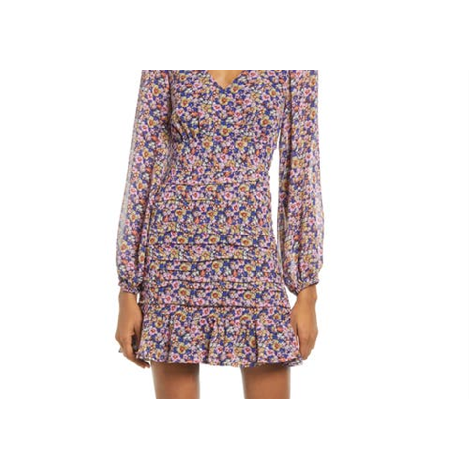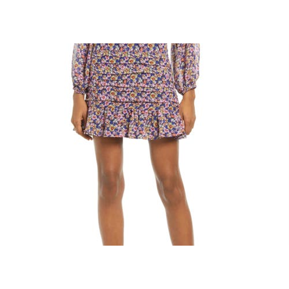 Minivestido Romántico Floral con Mangas Abullonadas de Floret Studios, Negro Multifloral, Talla XS, Tejido de Ganchillo, Transpirable, Cintura Natural