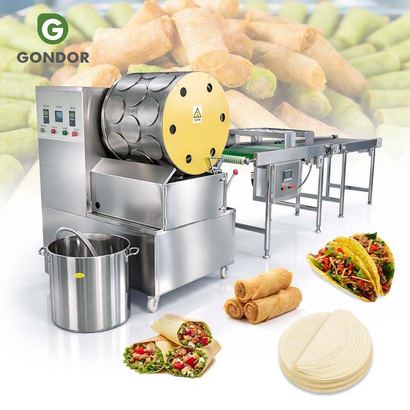 Máquina para hacer láminas de masa de harina, tapioca, margarina, para relleno de popiah, lumpia y rollitos primavera