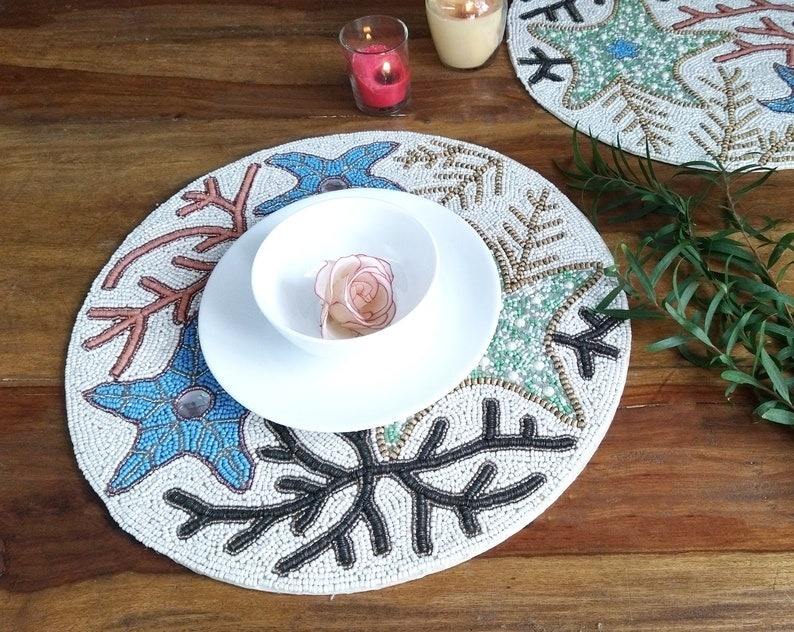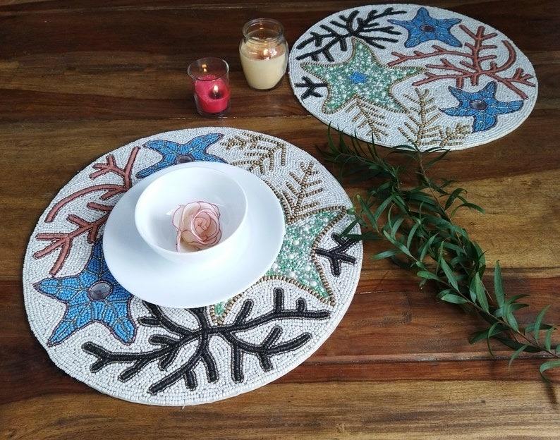 Posavasos y Manteles Individuales Bordados con Cuentas de Flores