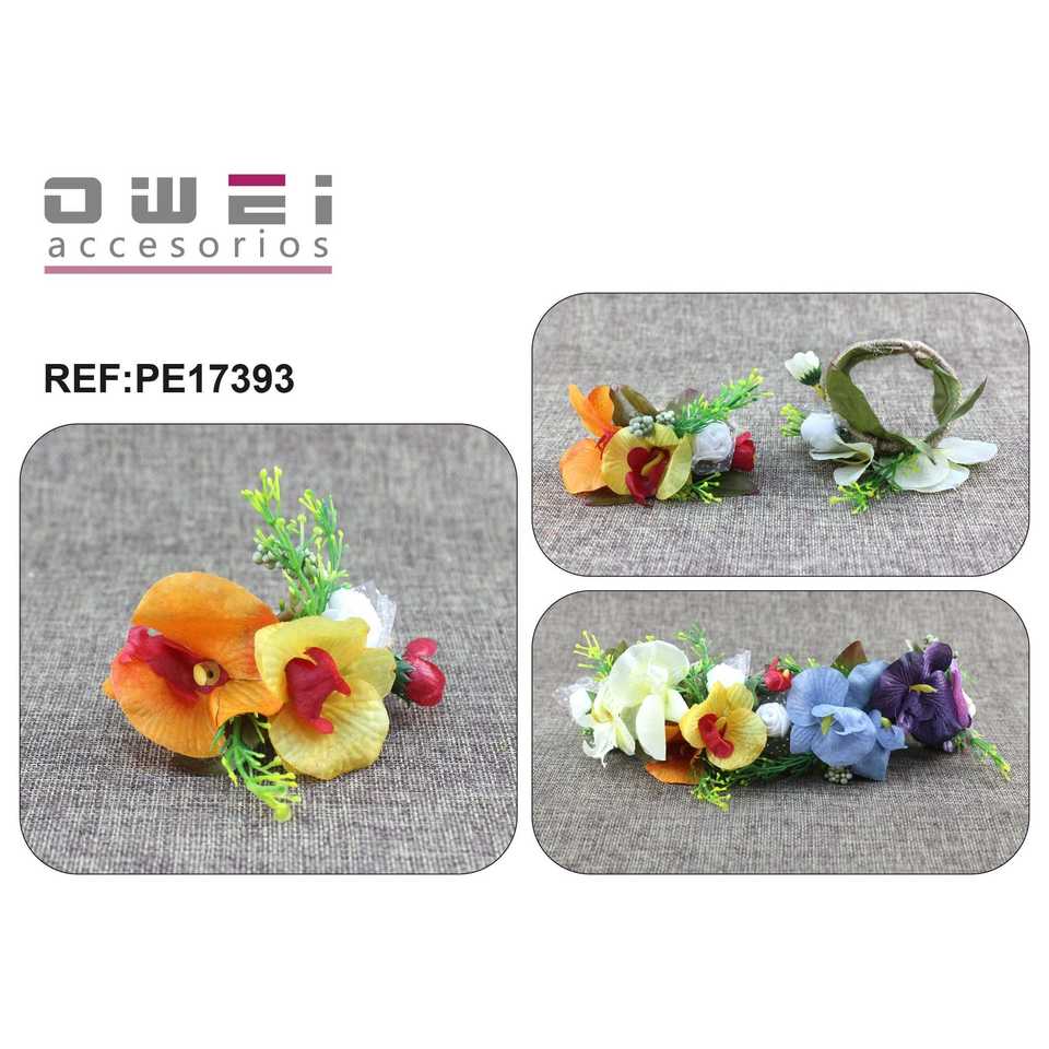 Accesorios para el cabello, diadema de flores y flores, pulsera de floresEtiquetas