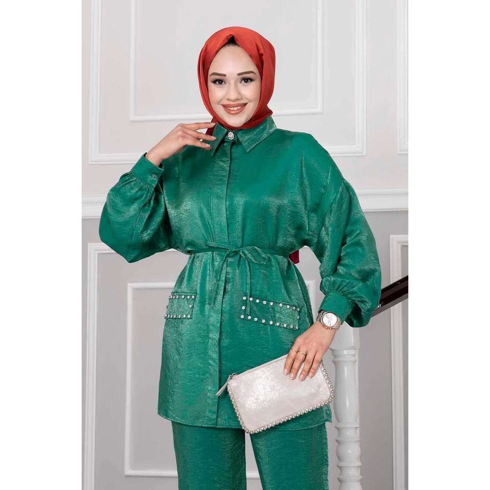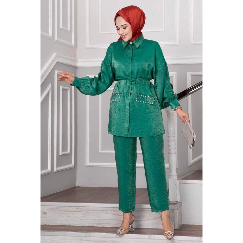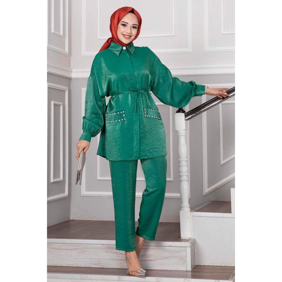 Detalle botón flor conjunto de 2 piezas verde