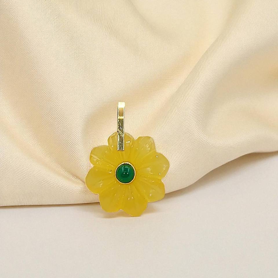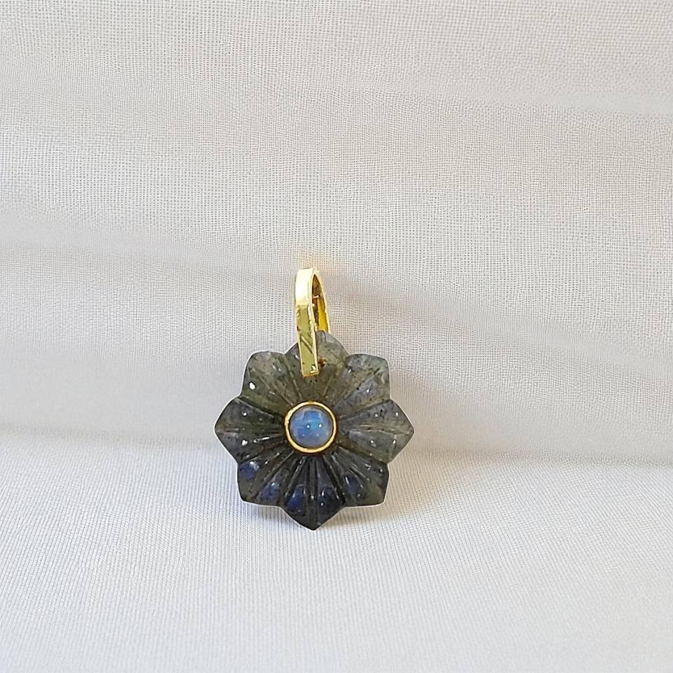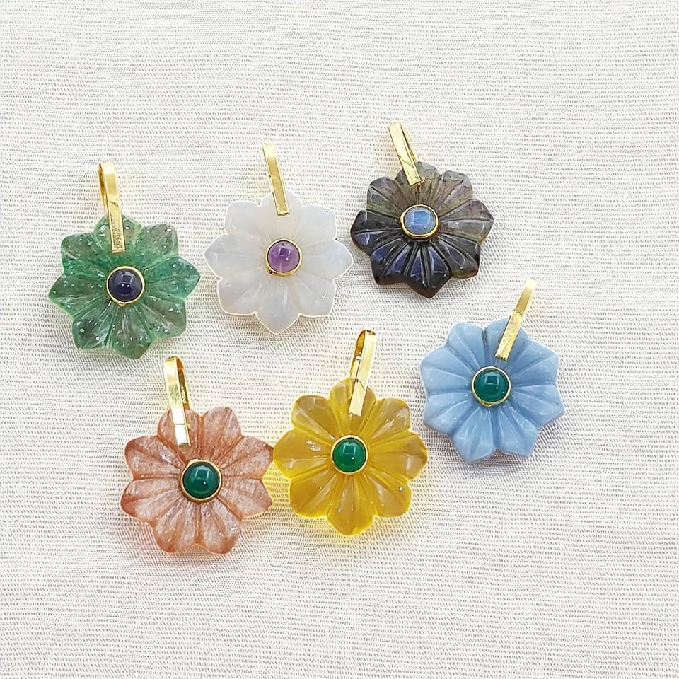 Nombre del Producto:Gema tallada en flor, 18 mm, oro vermeil, plata, doble piedra, amuleto