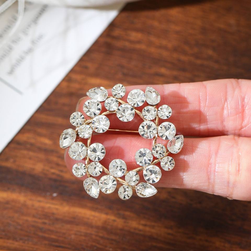 Broches de Cristal con Flores, Modernos y Elegantes, Botones de Diamantes de Imitación, Aleación Chapada en Oro, Personalizados, Unisex, para Uso Diario, Compromiso, Boda